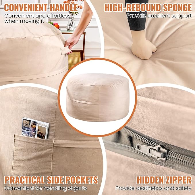 - CONVENIENT & PRACTICAL DESIGN: The bean bag features a side pocket for easy storage of small items like phones and books, as well as a handle for easy moving. Enjoy comfortable relaxation wherever you like.
