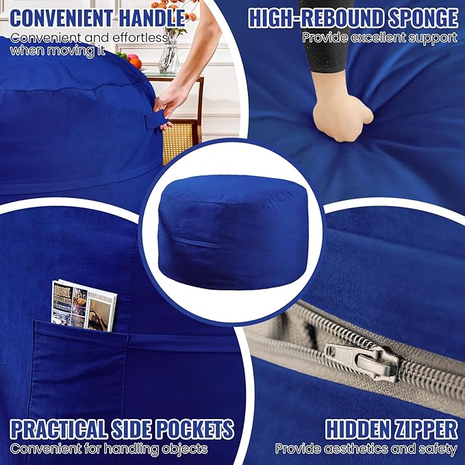 - CONVENIENT & PRACTICAL DESIGN: The bean bag features a side pocket for easy storage of small items like phones and books, as well as a handle for easy moving. Enjoy comfortable relaxation wherever you like.