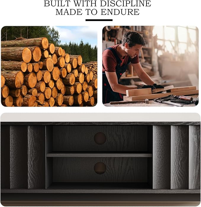 - DESERT-INSPIRED FLUTED DESIGN - The Forestune black TV stand channels the quiet power of sand dunes with soft, sculptural ridges that catch and diffuse light, turning your living room into a calming retreat with mid-century modern soul